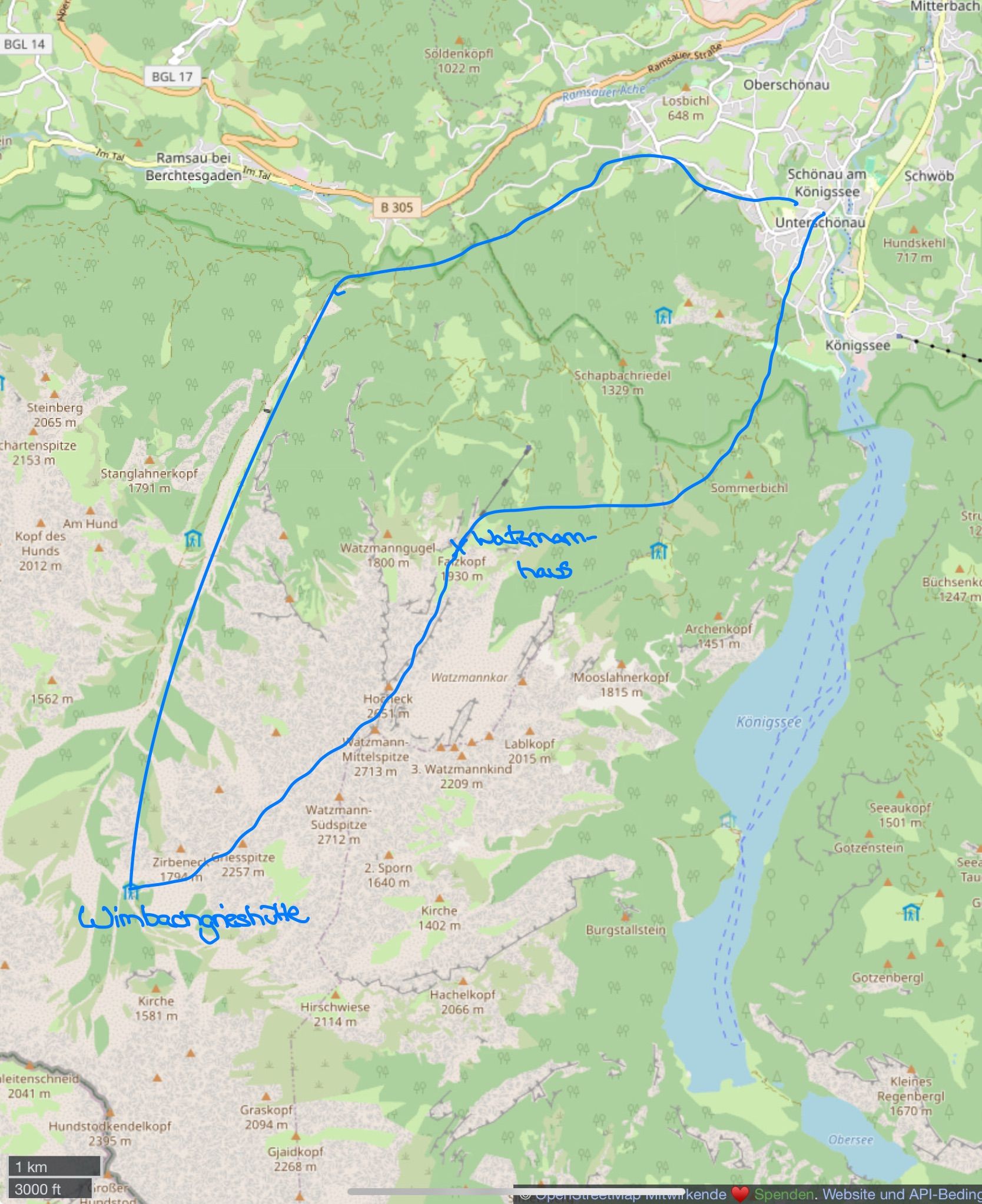 - Übernachtung: Watzmannhaus (ca. 5h Wanderung dorthin von Schönau aus)