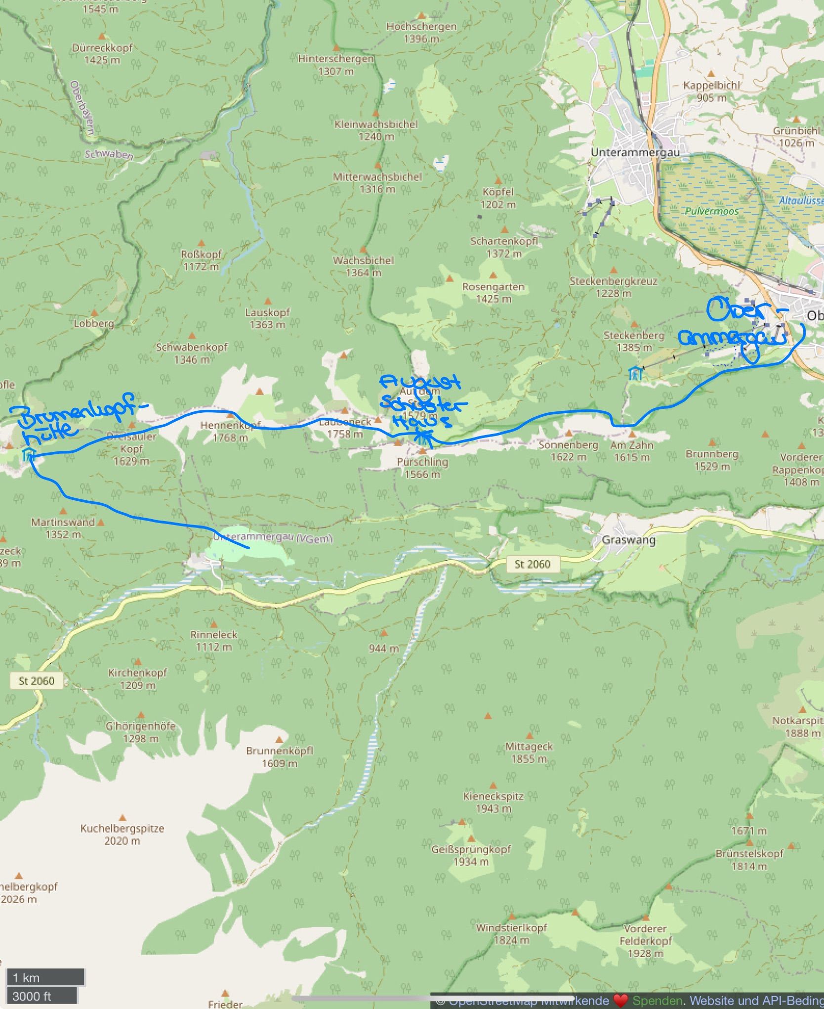 - Brunnenkopfhütte - Unterammergau (via Schloss Linderhof) (2h40min)