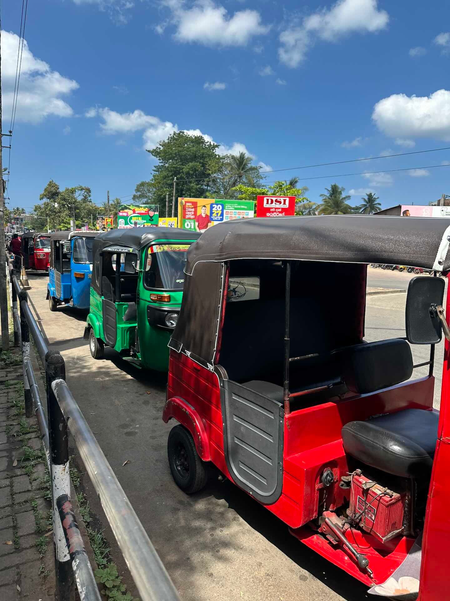 Tuk-Tuks sind in Sri Lanka gefühlt überall zu finden - und du kannst sie auf den verschiedensten Wegen anfordern. Oder sie dich: Die meisten fahren einfach hupend an dir vorbei und du kannst ihnen signalisieren, wenn du ihren Dienst in Anspruch nehmen willst.