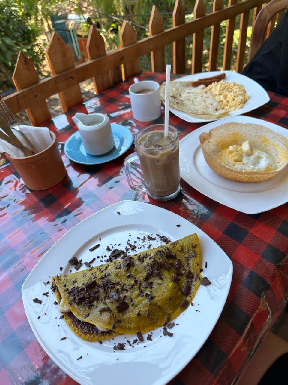 Dieses Restaurant lag auf unserem Weg zum Strand morgens und war mega! Wir haben uns einen Egg Hoppers, Choclate Pancakes und Scrambled Egg geteilt. Dazu gabs noch Kaffee und Tee. Preislich sind wir damit bei unter 8€ für zwei Personen geblieben. Auf der oberen Ebene kannst du den Affen zusehen, wie sie sich durch die Bäume schwingen. Aber Achtung! Wenn die Hunde nicht aufmerksam genug sind, springen die gern zu noch nicht abgeräumten Tischen.